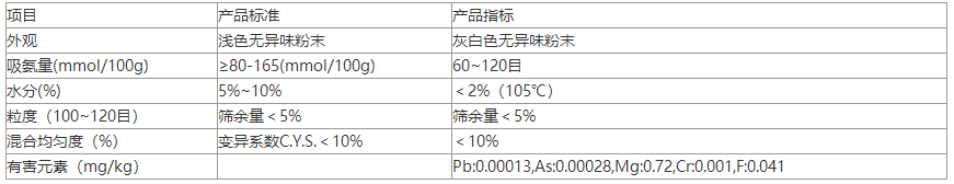 技術(shù)標(biāo)準(zhǔn):SO3:0.0726×10-2水泥膠砂28天抗壓強(qiáng)度62.88×10-2含水率<2%,陽(yáng)離子交換量:1.0mmol/g。
